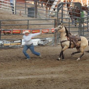 Here are a few photos and thoughts from the Saturday night rodeo. You’ll have to visit my Flickr feed to check out all 174 pictures taken that day (Aug 27 2016). Opening ceremonies with the flag The team doing a fancy turn Gorgeous chaps on this bareback bronc rider, beautiful horse too Horse on the … More IMPRA Amateur Finals Rodeo – 3