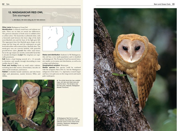 In the Species Accounts, which make up the bulk of the book, each owl is described with the following subheadings standardized across the accounts: Identification, Call, Food and Hunting, Habitat, Status and Distribution, Geographical Variation, and Similar Species. There are many full color photos and accurate range maps also included in the Species Accounts.
