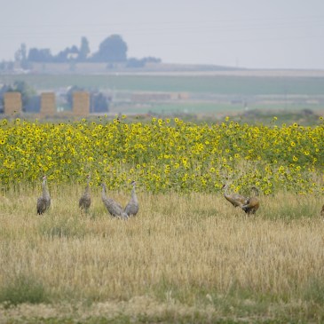 8/20/21 At the Camas National Wildlife Refuge https://www.fws.gov/refuge/camas/ Sandhill cranes in tan and gray Sandhill cranes all in a row American kestrel Yellow headed blackbirds in the sunflowers Sunflowers